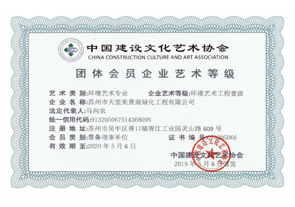 公司擁有園林古建專業承包壹級、市政工程總承包貳級、建筑施工總承包三級、環境藝術總承包壹級、環境藝術施工壹級、環境藝術設計甲級等資質。先后成為中國建設文化藝術協會環境藝術委員會常務理事單位、中國建筑與園林藝術委員會常務理事單位、蘇州市香山幫營造協會常務副會長單位、羅哲文古建文化(蘇州)基地。